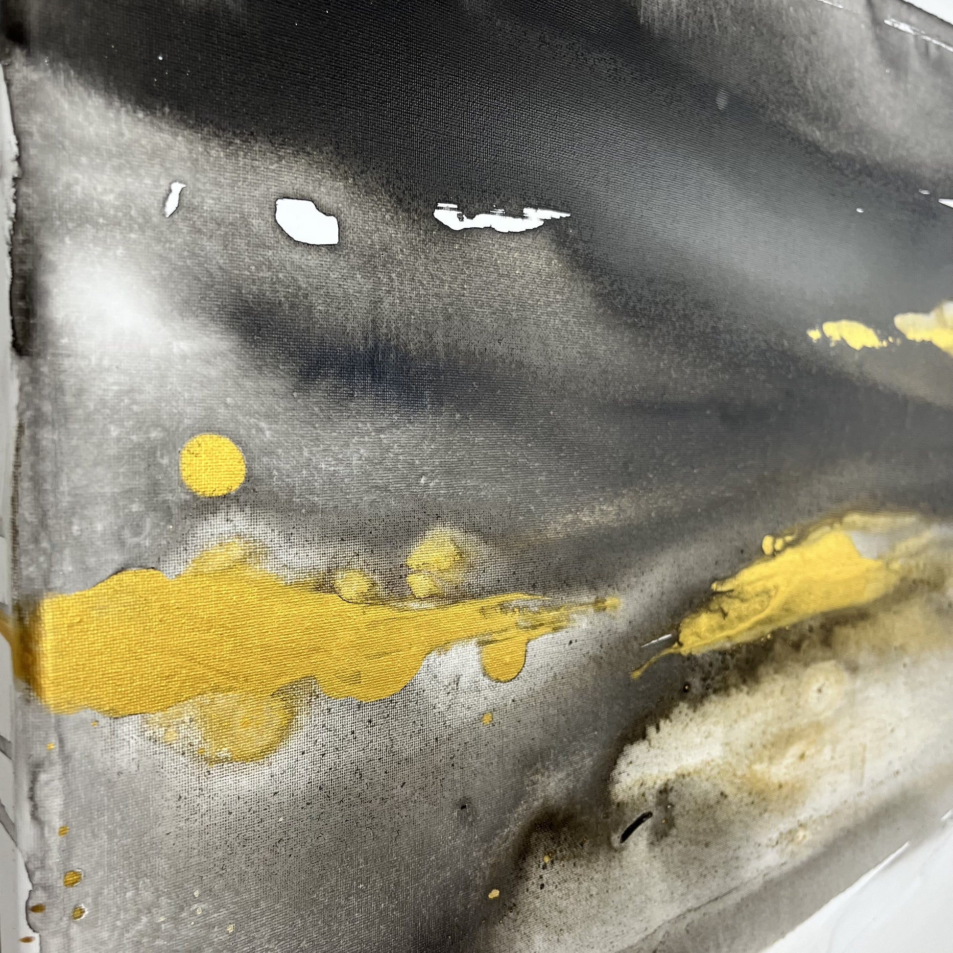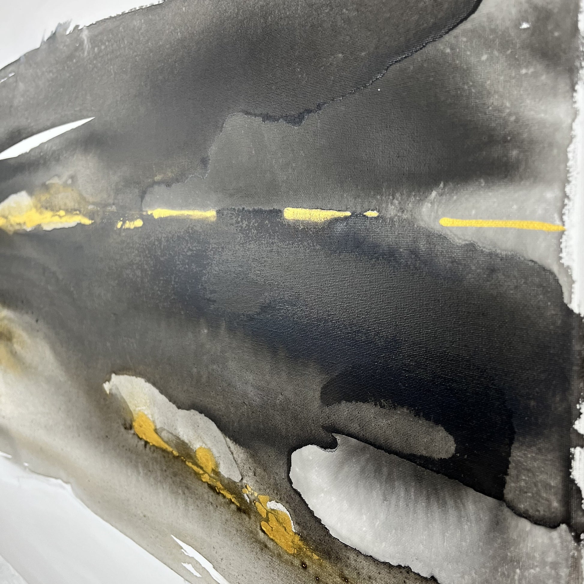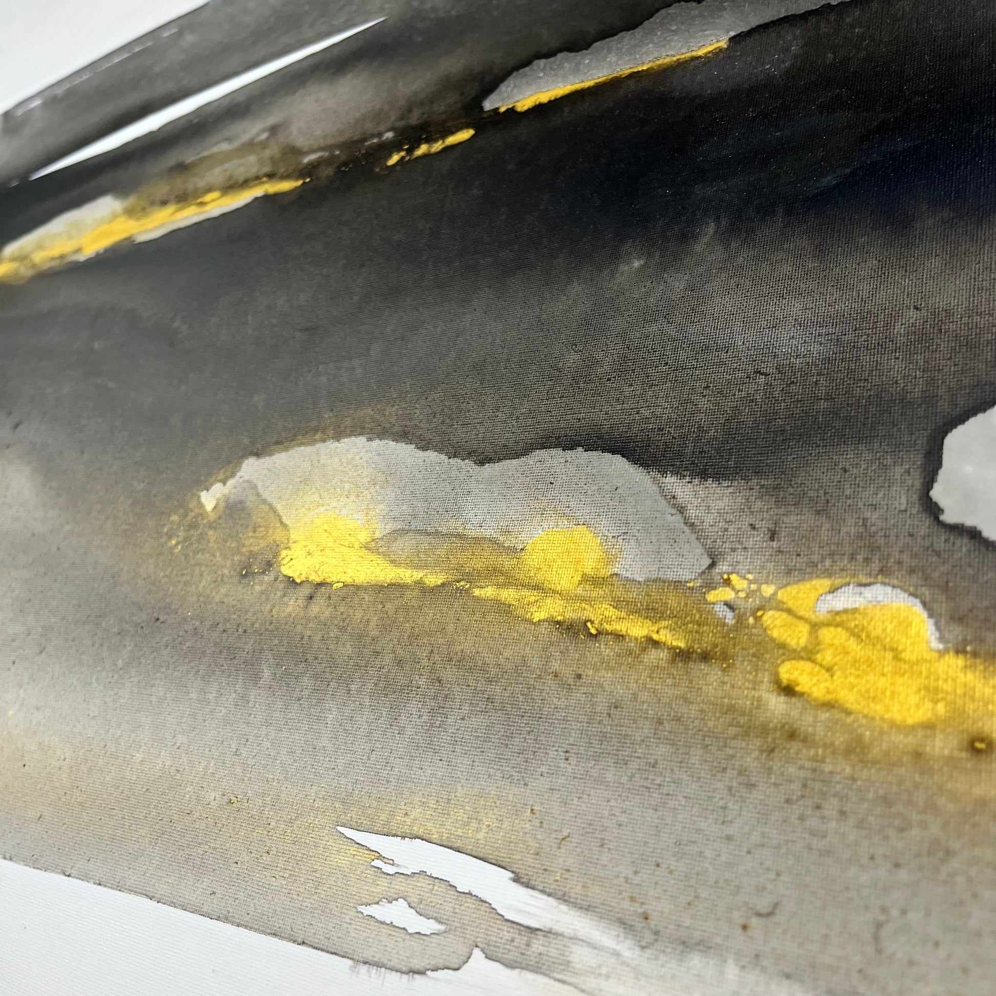 Earth’s Whisper I captures the quiet strength and hidden beauty of the natural world, a reflection on the earth’s precious metals and minerals that lie beneath the surface, always in motion, always alive. Layers of gold, iron, and deep mineral tones flow across the composition, echoing the steady rhythm of the planet’s constant movement.