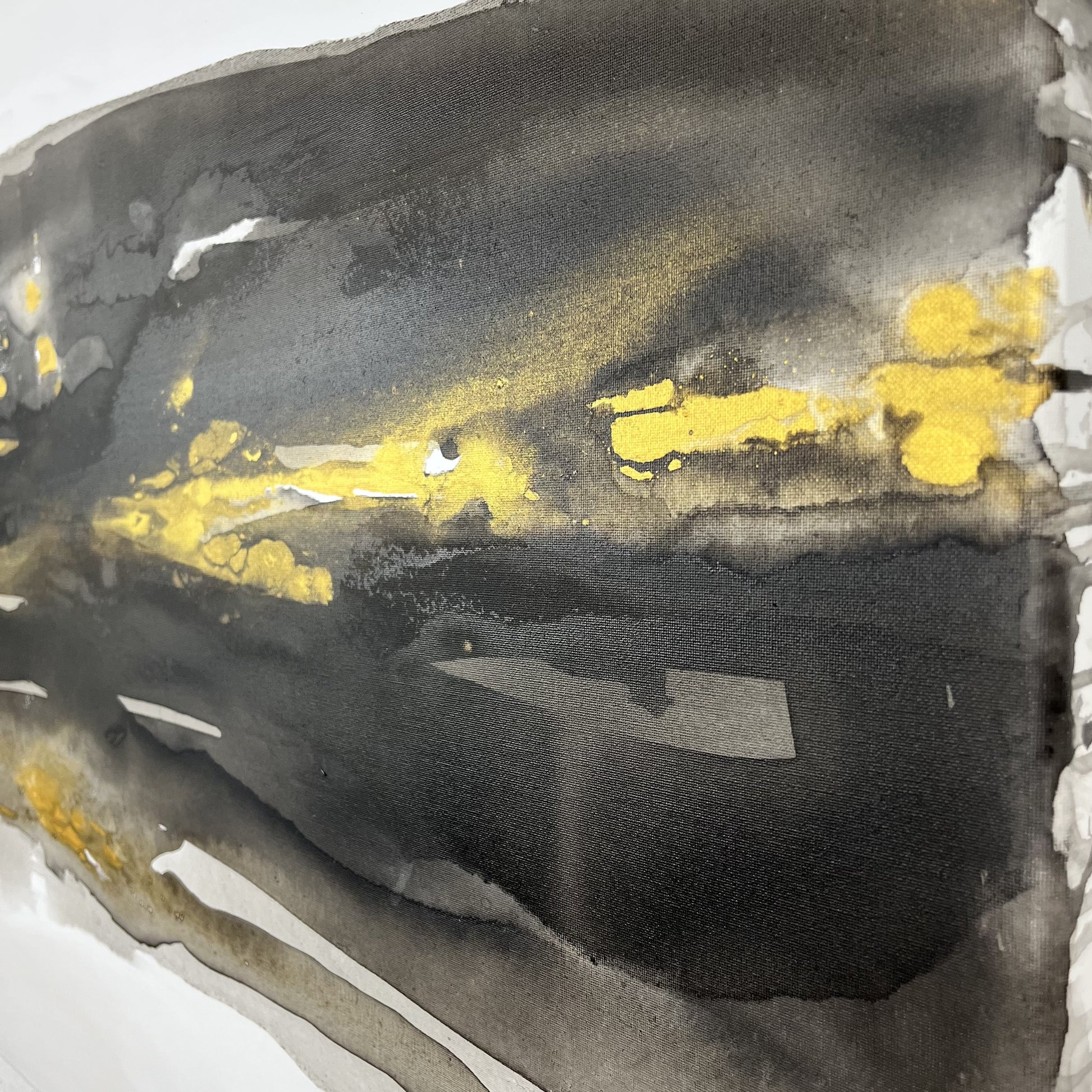 Earth’s Whisper III reveals the earth’s quiet brilliance, a fusion of molten tones, mineral depth, and organic rhythm inspired by the hidden elements beneath our feet. Gold, iron, and coal shimmer through layers of translucent ink, expressing both the stillness and the strength that exist deep within the ground.