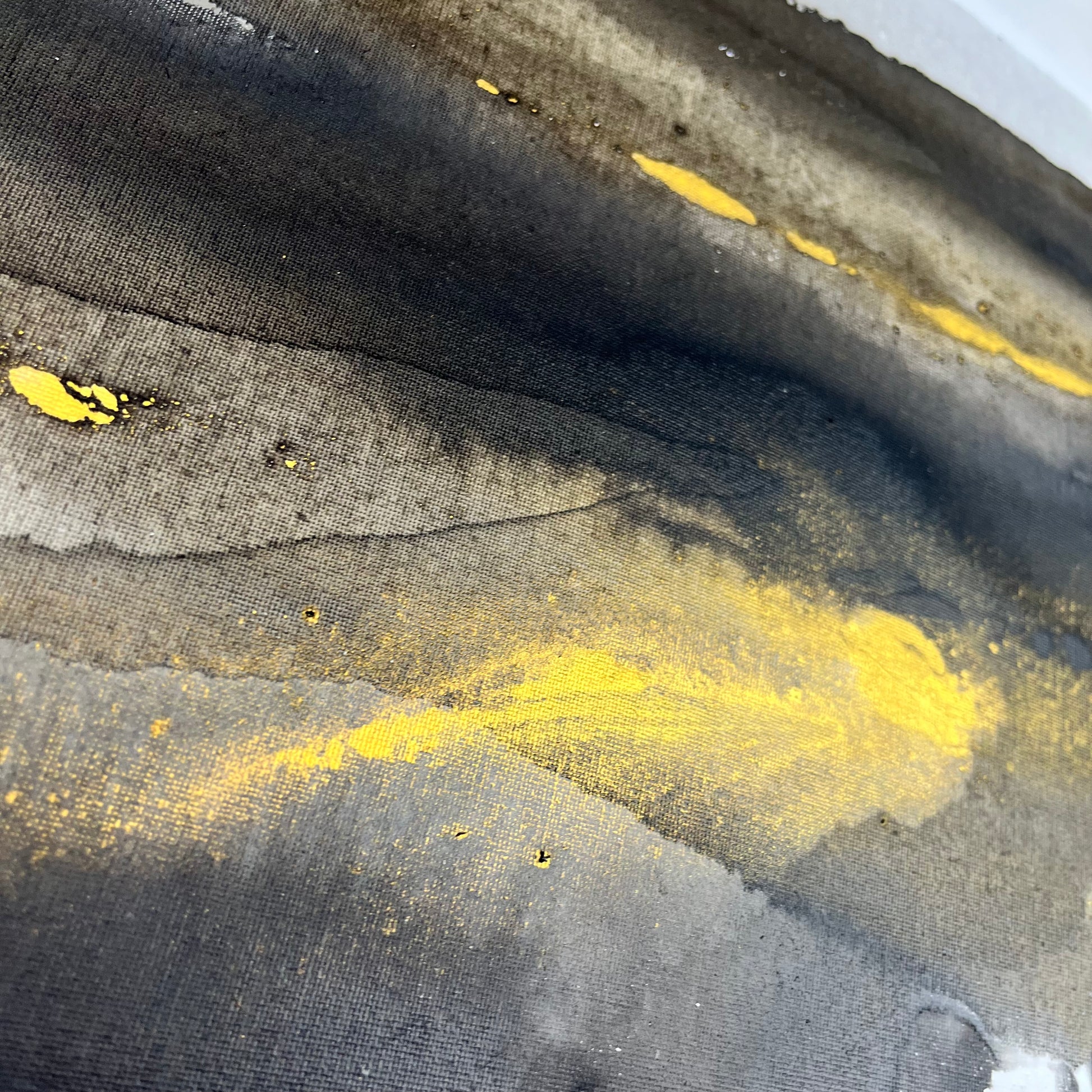 Earth’s Whisper VI reflects the final cadence of the series, a quiet, luminous balance between strength and serenity. Soft metallics in bronze, gold, and charcoal move fluidly across the canvas, suggesting the constant rotation of the earth and the unseen energy within its core.